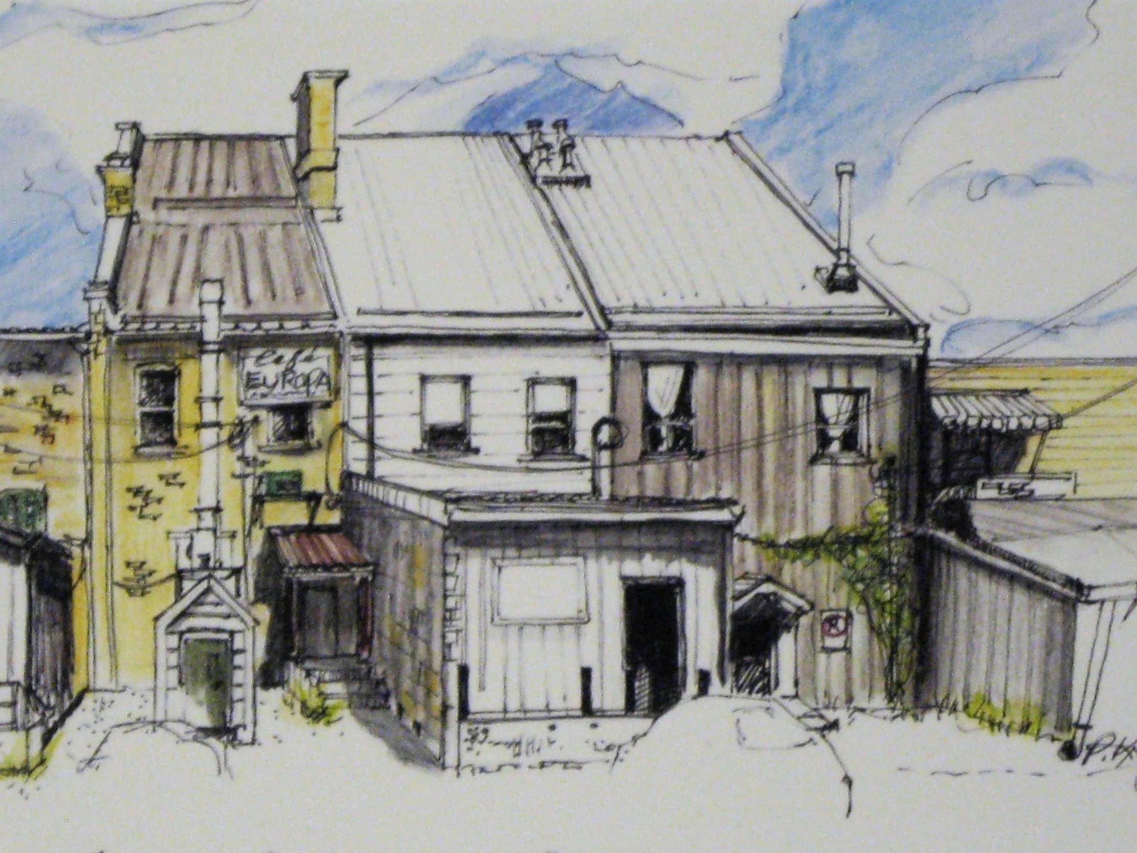 Pat has always felt a deep connection to the structures we choose to work and live in. Working en plein air, she loves to capture the textures, shapes, shades and shadows of the urban environment using ink and watercolour.